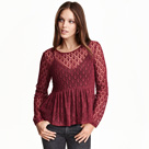 Peplumshirt aus SpitzeTransparentes Peplumshirt aus besticktem Mesh. Modell mit langem Arm. • 55% Polyamid, 45% Baumwolle • Maschinenwäsche 30˚